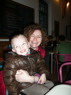Well, I didn't post yesterday mostly because I didn't want Tim to look at my blog and see his Valentine's present! As I have now given it to him I figure it doesn't matter any more. But I digress...Yesterday was a miserable wet day and so Alex and I went out to an indoor play area in the afternoon where we met up with my Chief Bridesmaid, Arlene, who I haven't seen in nearly 8 years. It was so lovely to meet up and while Alex and Sophie played we were able to have a good old natter and catch up. This photo is of Alex and Arlene taken just as we were all about to go home.