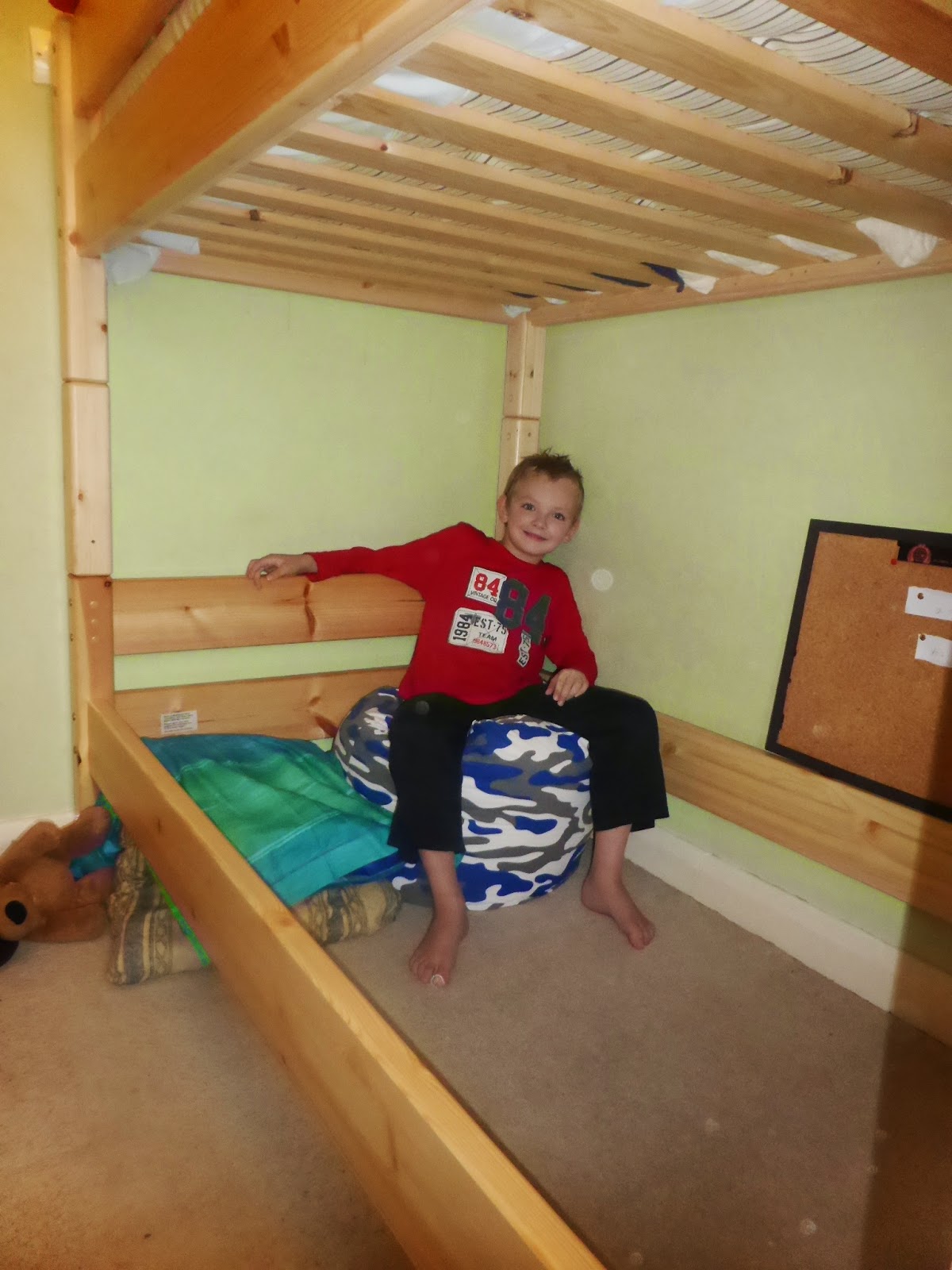 Well we have had a busy week this week with lots to smile about so here is my entry to Annie's smiles. Firstly, last weekend I finally managed to get Alex's cabin bed assembled, and boy was it a challenge doing it in his tiny little box room of a bedroom. I was stiff and aching for days afterwards, but it was worth it as he is so happy with it and he has plans to turn the space under the bed into a 'spy den'. Curtains have been commissioned (thanks Jo!), some furniture chosen, and his Grandpa is lined up to make a desk. It may be a month or more before it is completed, but he is simply happy that the process has started (we promised him this about a year or more ago).